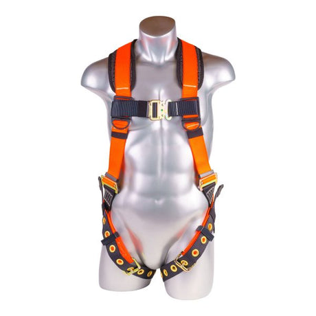 HARNESS 5PT. BACK PADDED, ALUMINUM DORSAL D-RING, QCB CHEST, GROMMET LEGS, ORANGE COLOR (H222100141)