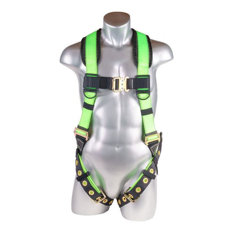 HARNESS 5PT. BACK PADDED, DORSAL D-RING, QCB CHEST, GROMMET LEGS, HIGH VIS GREEN COLOR (H222100181)