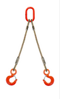 Two leg wire rope bridle with oblong master link on top and rigging/latch hooks on bottom