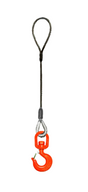 Single leg wire rope sling with standard eye on top and swivel rigging/latch hook on bottom